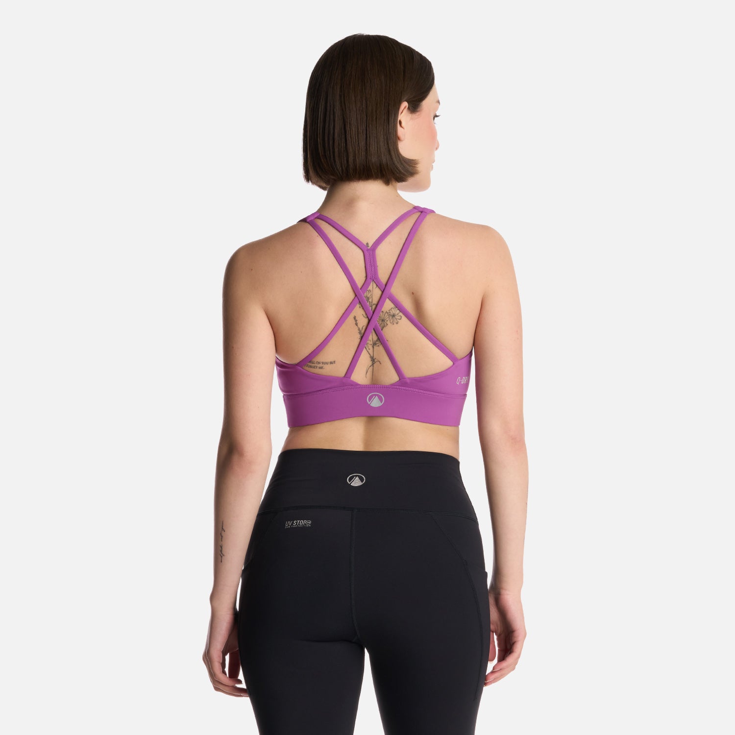 - Sujetador deportivo - Escote redondo - Pretina inferior delgada - Cruce de pabilos en la espalda para mayor firmeza - Sistema de secado rápido Q-Dry - Copas interior desmontables, acolchadas y moldeadas - Estampados reflectivos para mayor visibilidad - Tratamiento Anti pilling - Calce ajustado