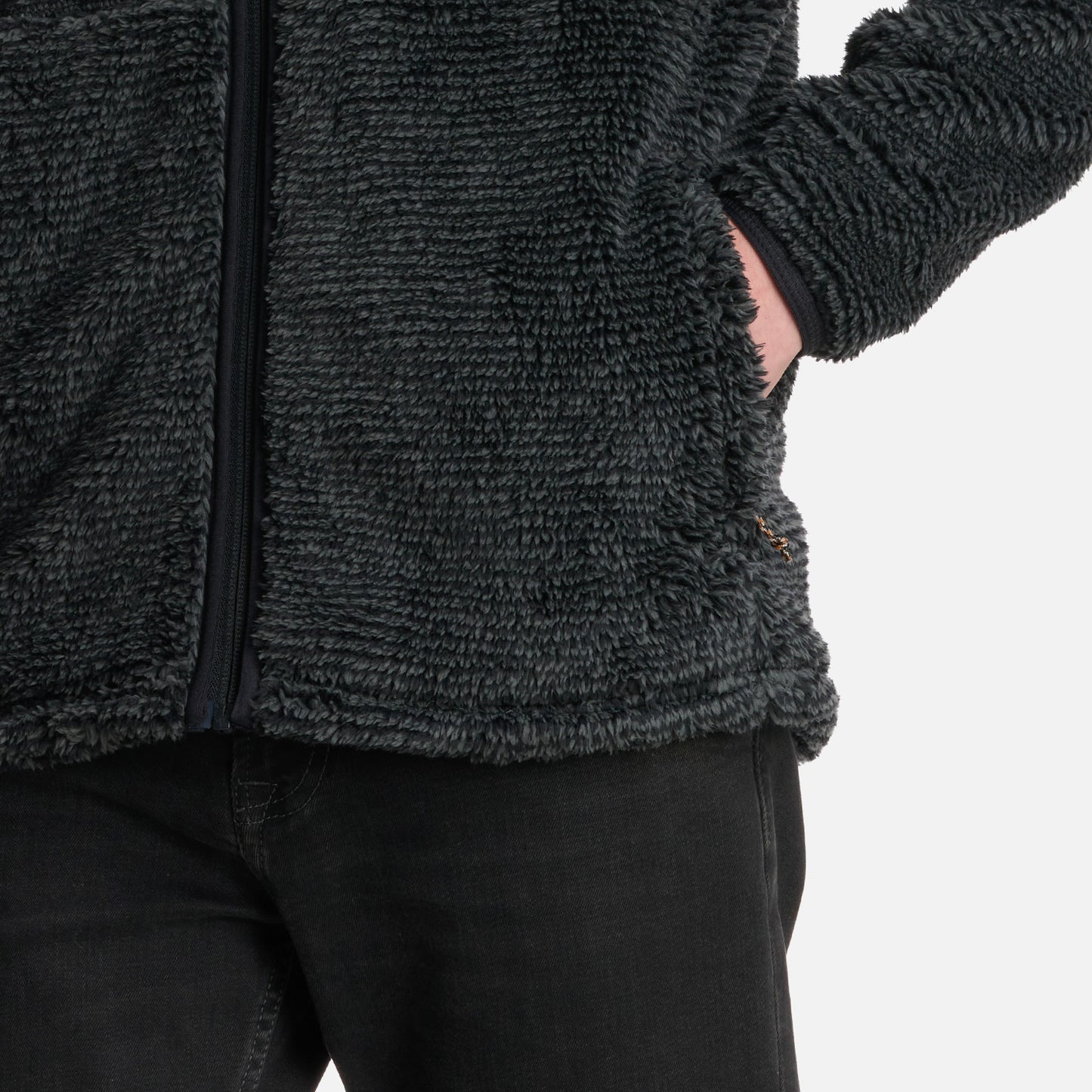 Chaqueta de tela Shaggy, pelo largo. 100% Poliéster Reciclado - Cierre prinicipal YKK - Bolsillo en pecho y en los costados - Borde de cuello y puños con tela de jersey - Parche tejido en pecho - Calce regular