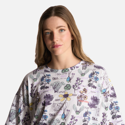 Hablemos de estampados lindos. La Botánica es un viaje hacia el sur verdecito, sus flores y colores. Una oda a la naturaleza ilustrada por el artista Moto Roker. Una polera de algodón, infaltable en los looks de verano, liviana y fresquita. Ojo que su calce es holgado. Arte hecho polera.