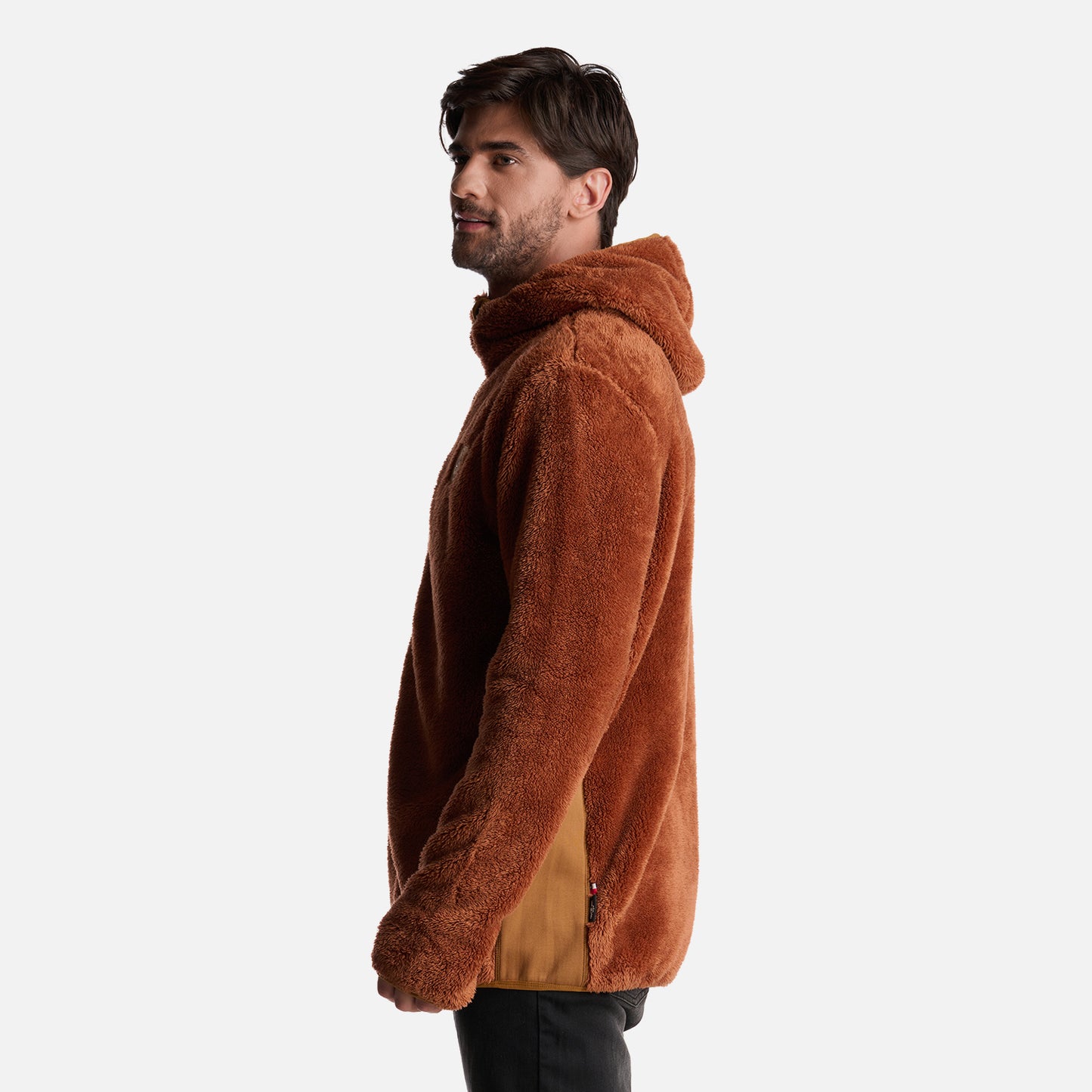 - Polerón de tela shaggy con gorro. - Tratamiento antipilling. - Producto Sustentable. - Cierre principal YKK. - Bolsillo de pecho con cierre SBS. - Gorro con banda elastica. - Elástico en basta para mejor calce. - Ajuste en puños con elástico, Abertura para dedo pulgar. - Gráficas: Full estampado, Accesorios de cuero. - Bolsillo de costados con cierre SBS escondido. - Calce regular.