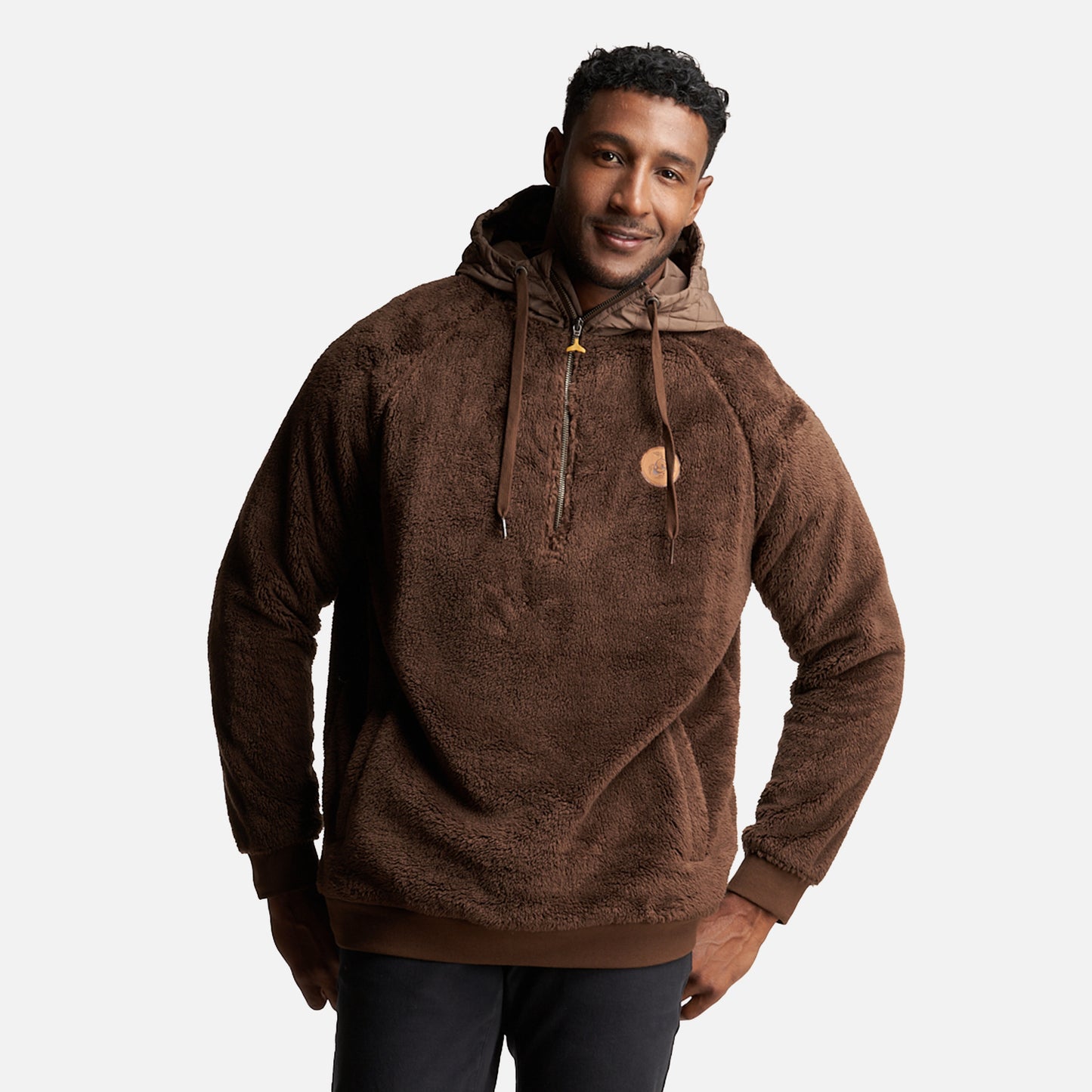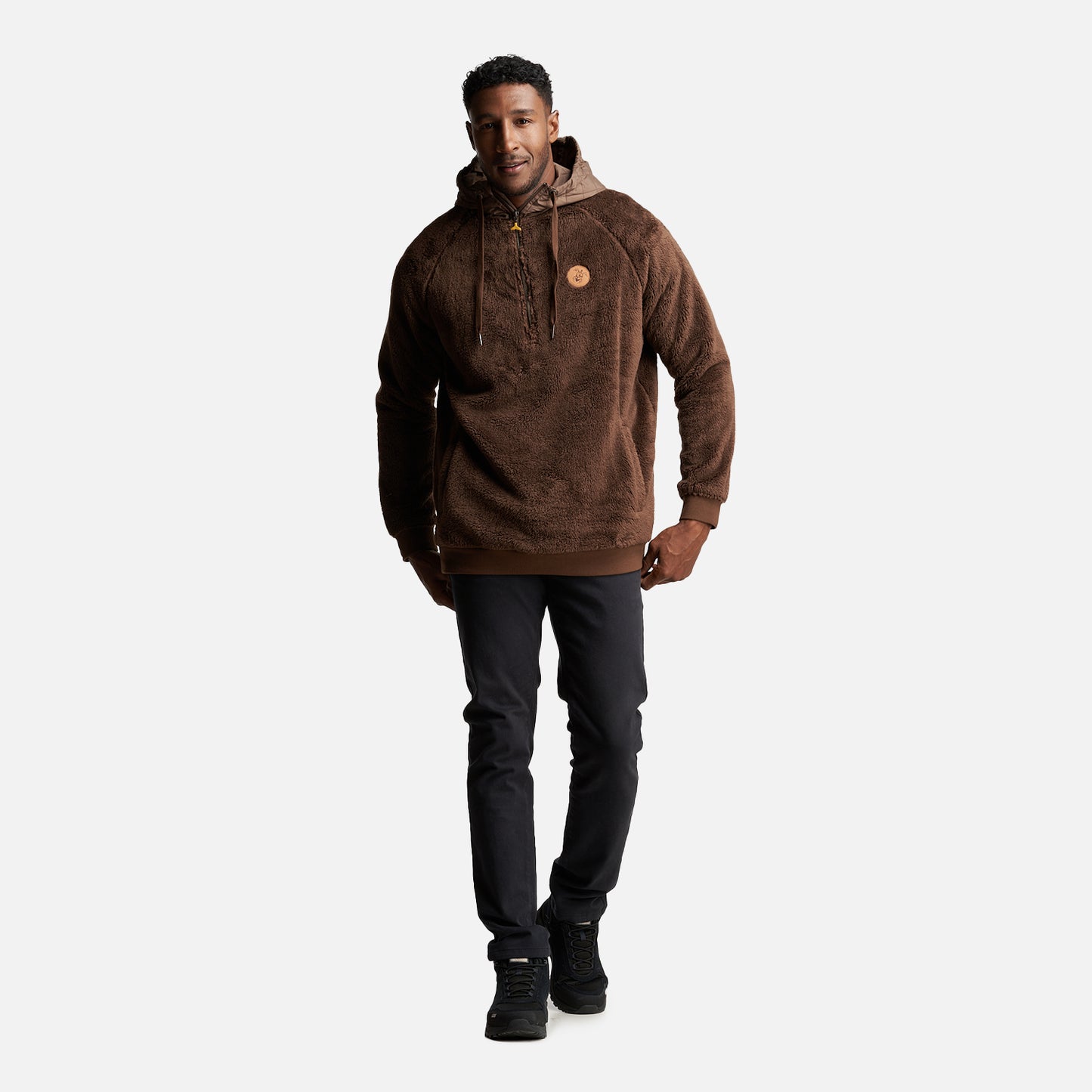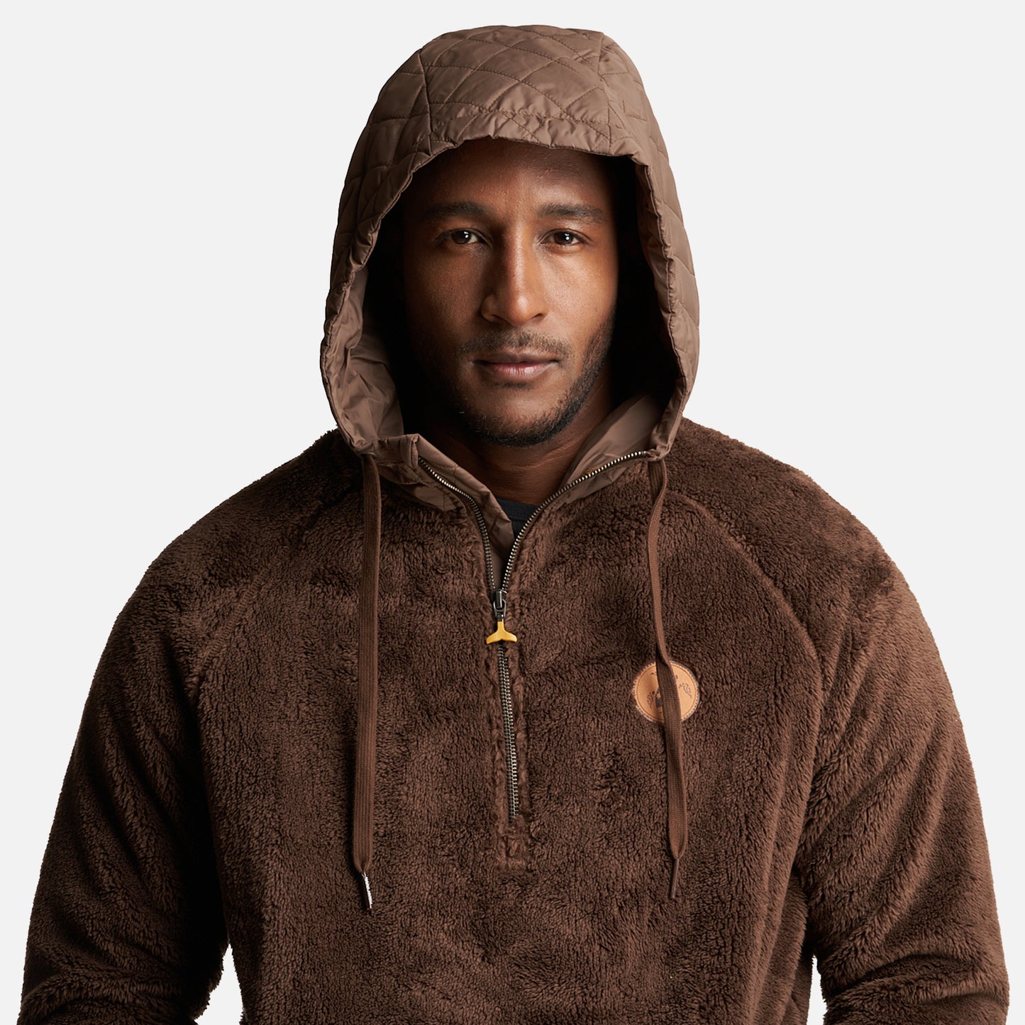 Polerón Shaggy, con gorro insulado Cierre principal YKK metalico Bolsillos de mano sin cierre Gorro con sistema de ajuste Accesorios de cuero