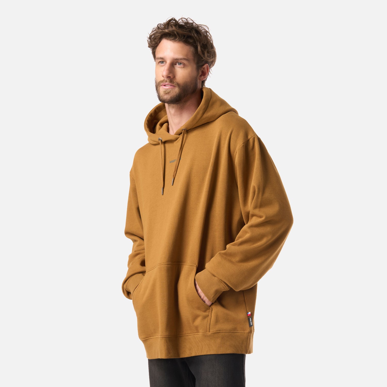 - Polerón de algodón con gorro. - Producto Sustentable. - Gorro con ajuste de cordones. - Gráficas: Logos estampados. - Bolsillo canguro. - Calce oversize.