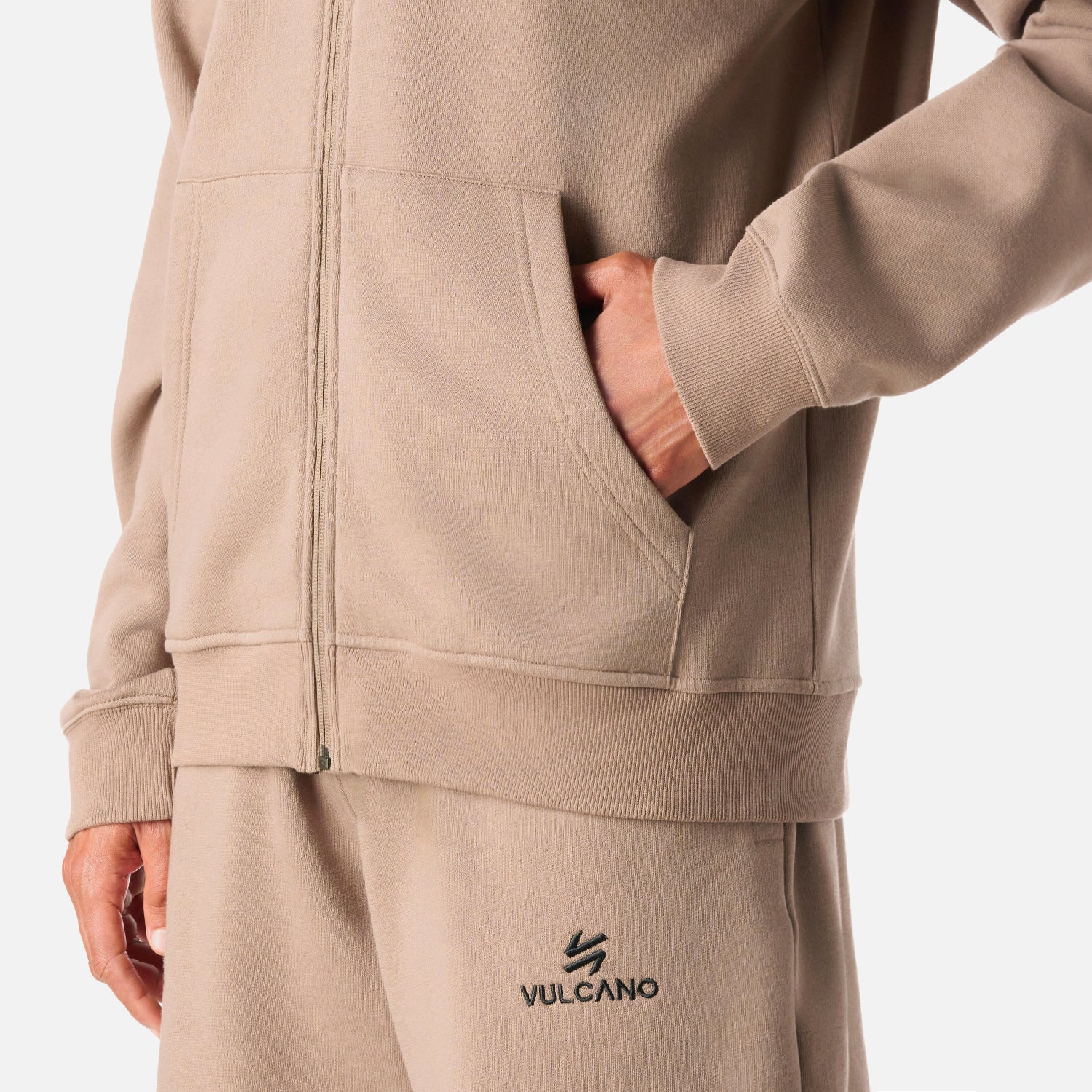 Polerón Hombre Cool Down Full Zip Sweatshirt Hoody Taupe Vulcano