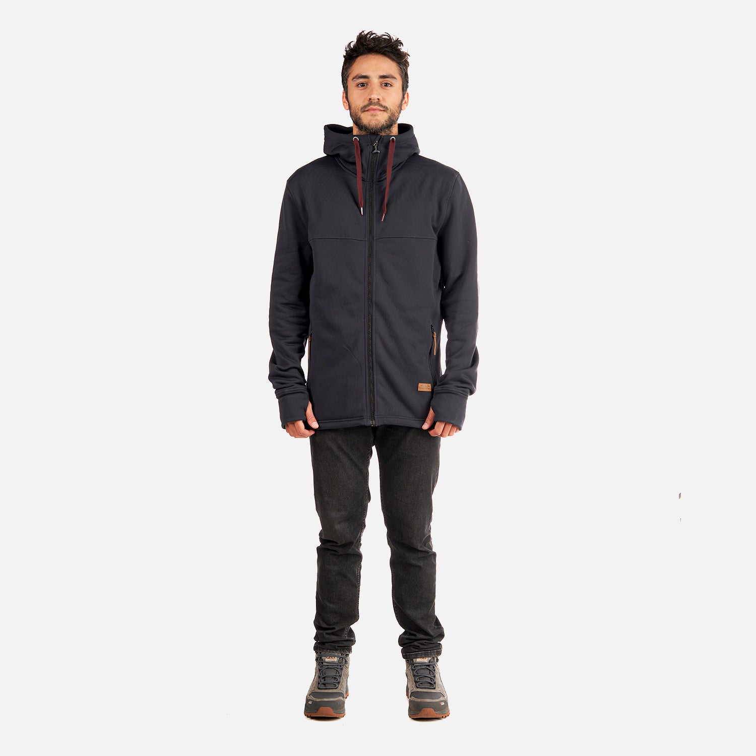 Polerón tipo canguro de tela elásticada con interior de microforro polar que absorbe la humedad. Gorro ajustable con ajuste tipo cordón. Cierre frontal YKK Bolsillos laterales con cierre oculto. Puño con salida de pulgar, mantienen el frío afuera y las mangas en su lugar. Tratamiento antipilling. Corte vertical permite un ajuste perfecto. Fit Regular.