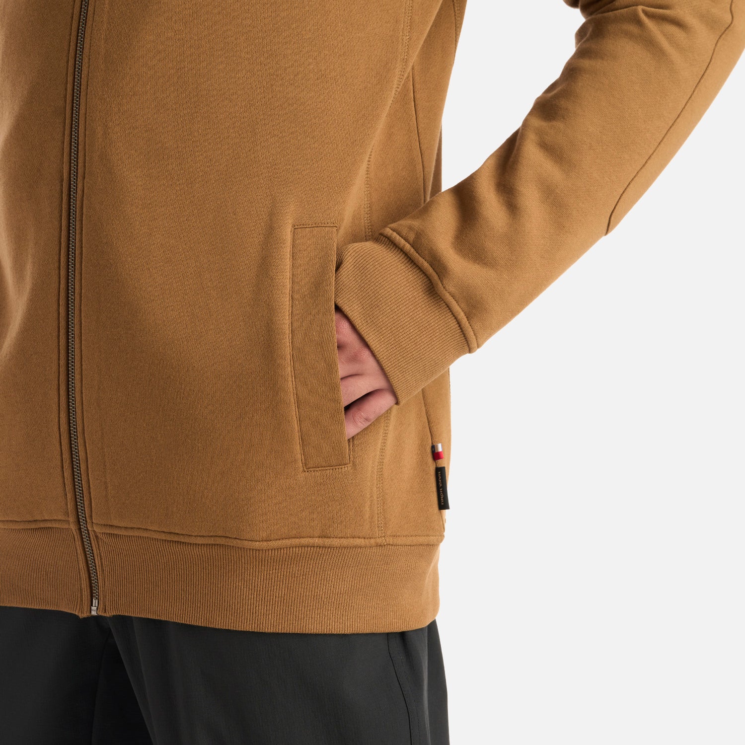 - Polerón de algodón con gorro. - Tratamiento antipilling. - Producto Sustentable. - Cierre principal YKK. - Gorro con ajuste de cordones. - Gráficas: Accesorios de cuero. - Bolsillo de costados con tapeta. - Calce regular.