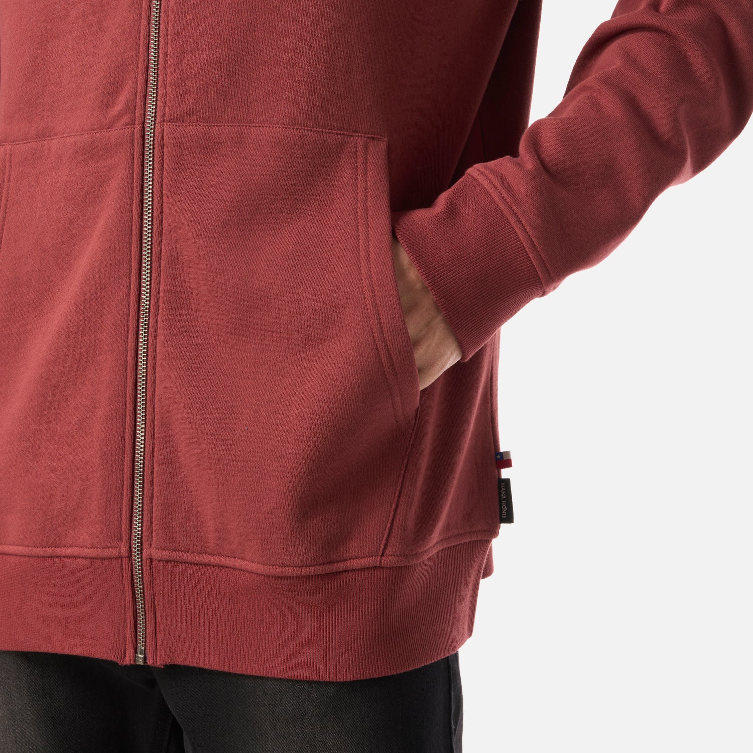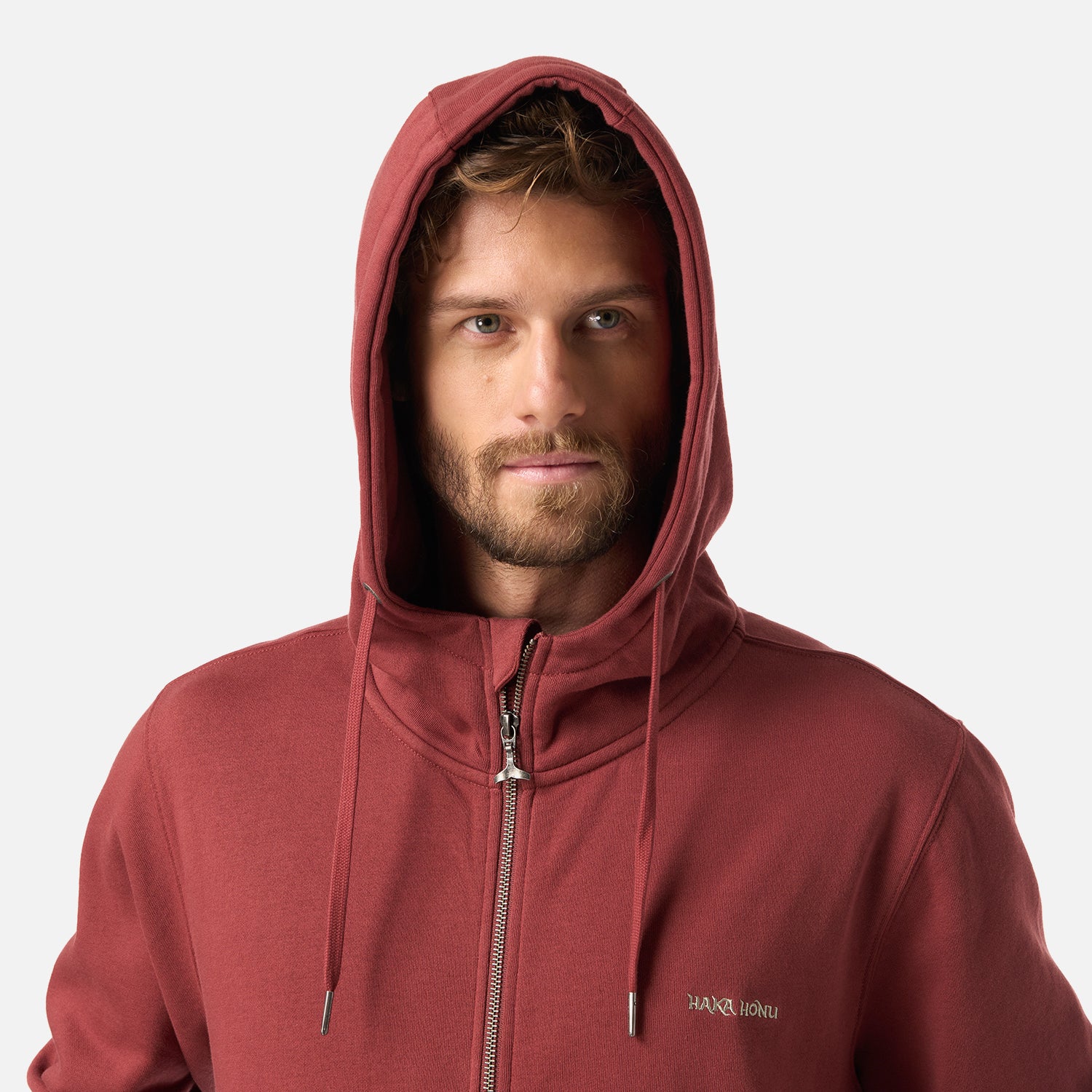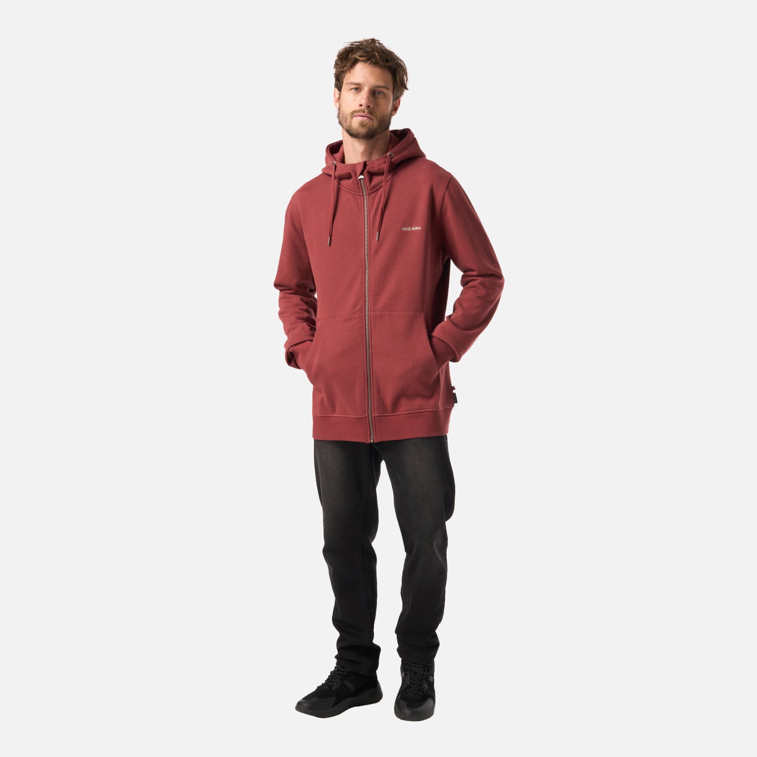 - Polerón de algodón con gorro - Tratamiento antipilling - Producto Sustentable - Cierre principal YKK - Gorro con ajuste de cordones - Gráficas: Accesorios de cuero - Bolsillo de costados con tapeta - Calce regular