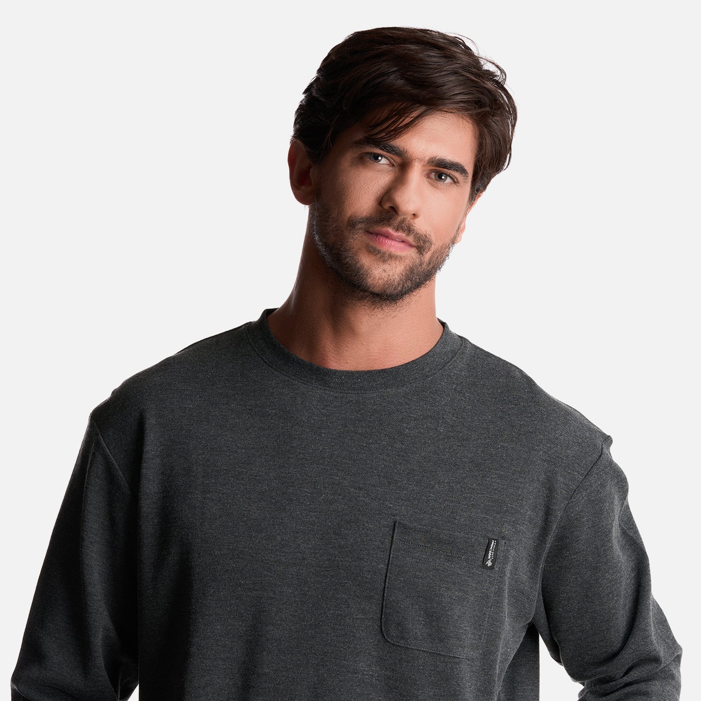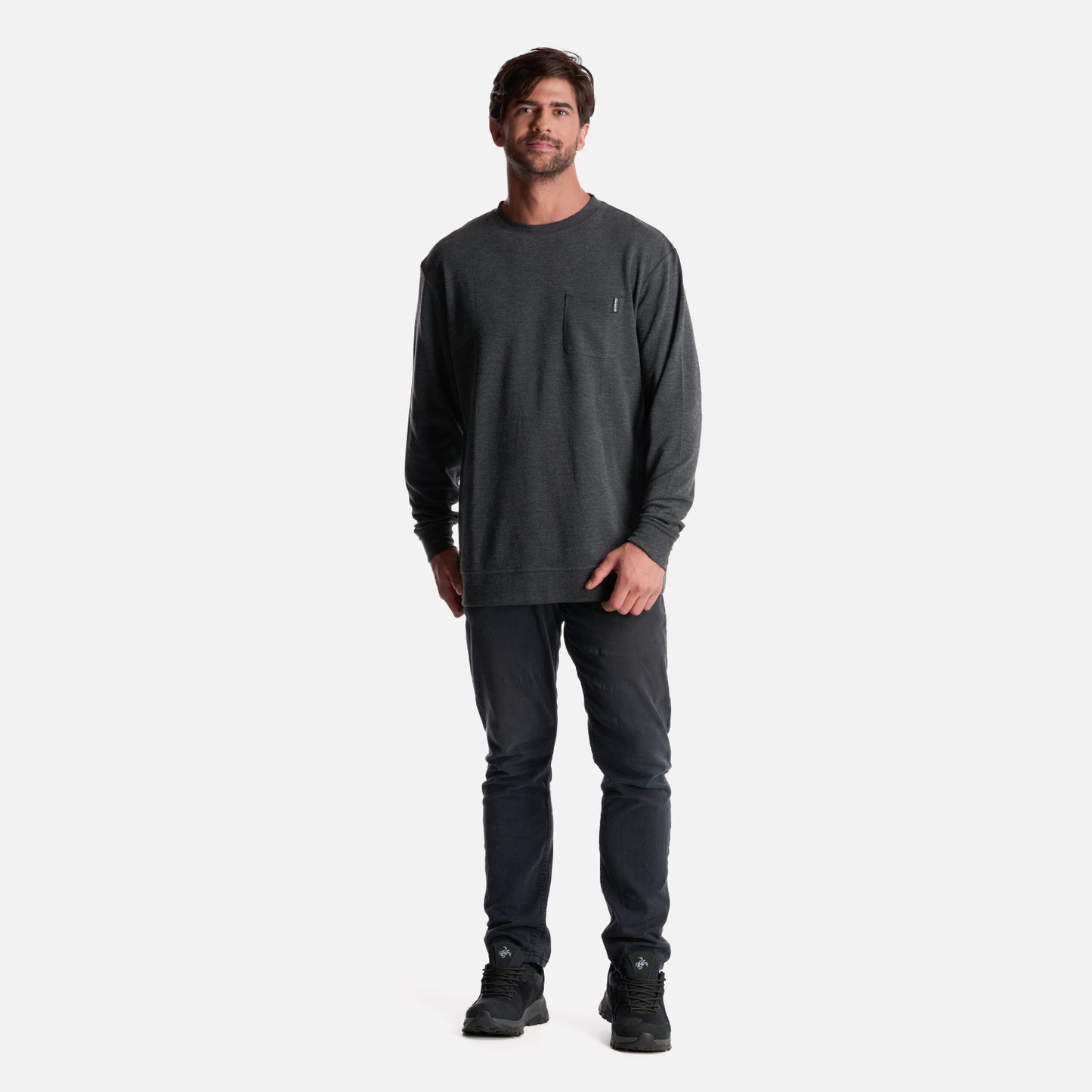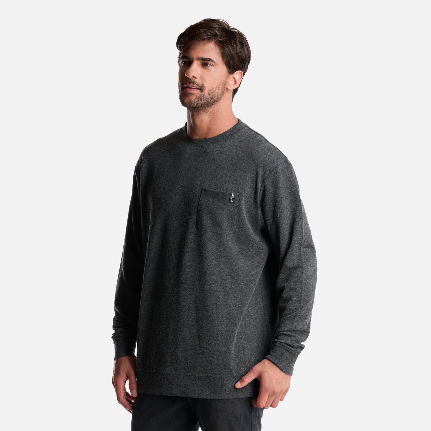 - Polerón delgado cuello redondo. - Tratamiento antipilling. - Bolsillos de pecho parche. - Calce regular.