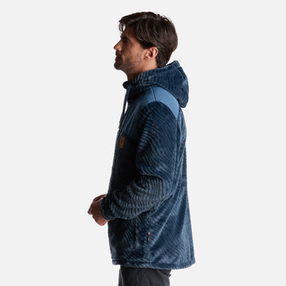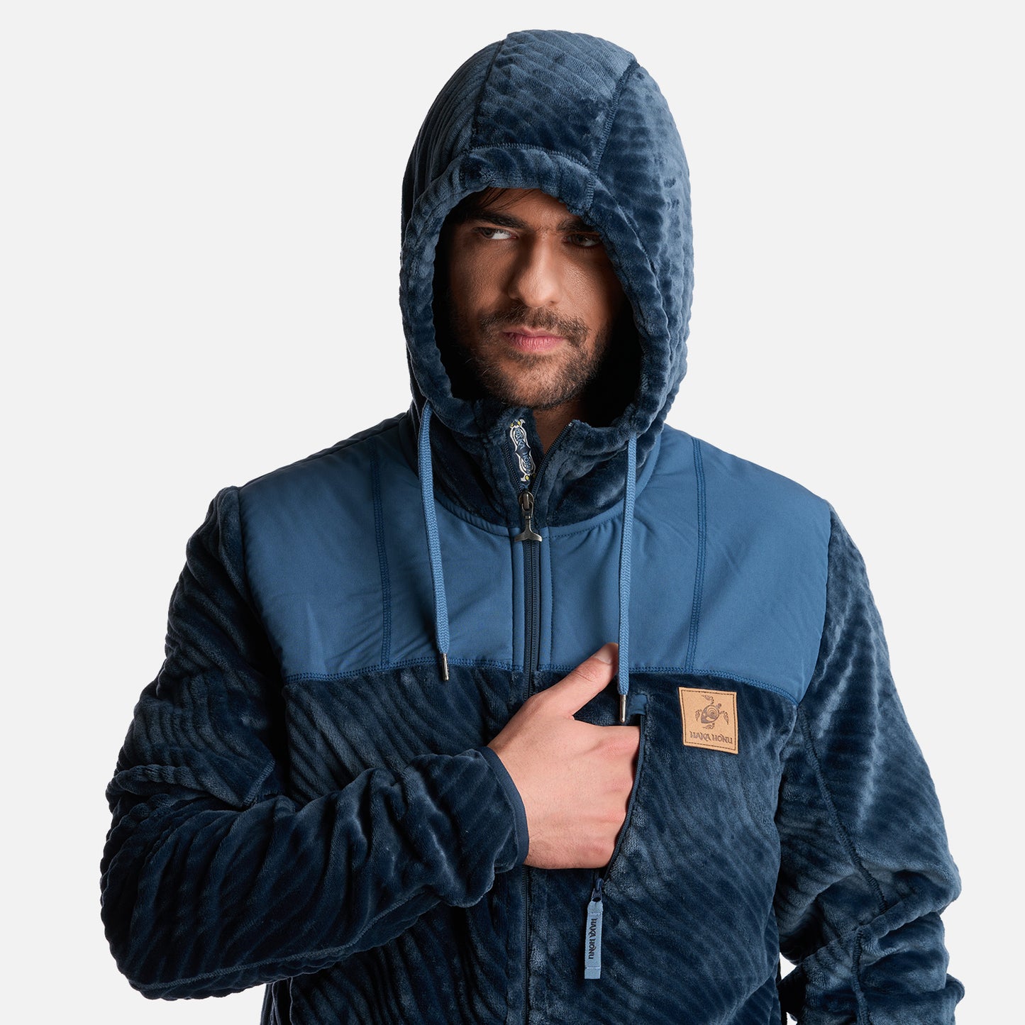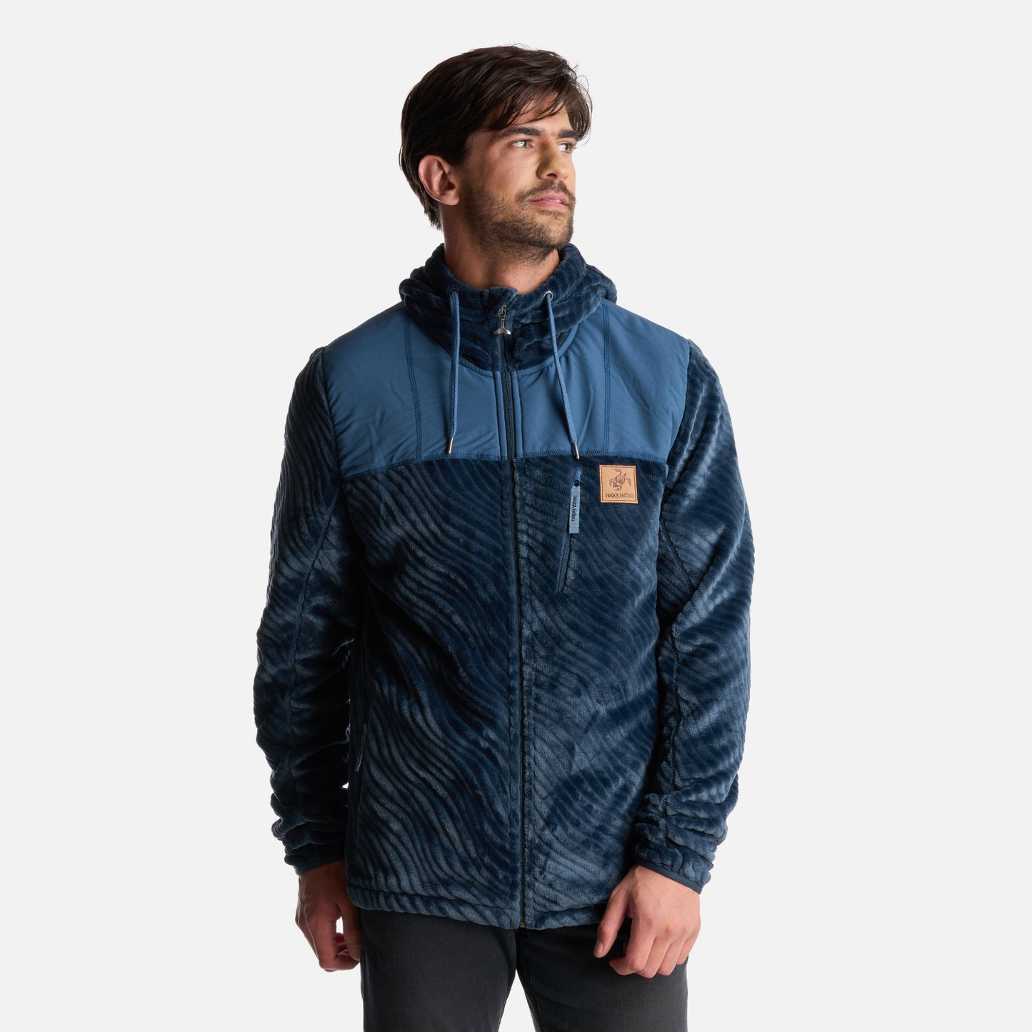 - Polerón de tela shaggy con embossed. - Tratamiento antipilling. - Producto Sustentable. - Cierre principal YKK. - Ajuste en puños con elástico. - Gráficas: Accesorios de cuero. - Bolsillo interior. - Bolsillos con cierre SBS. - Calce regular.