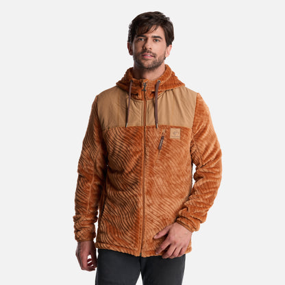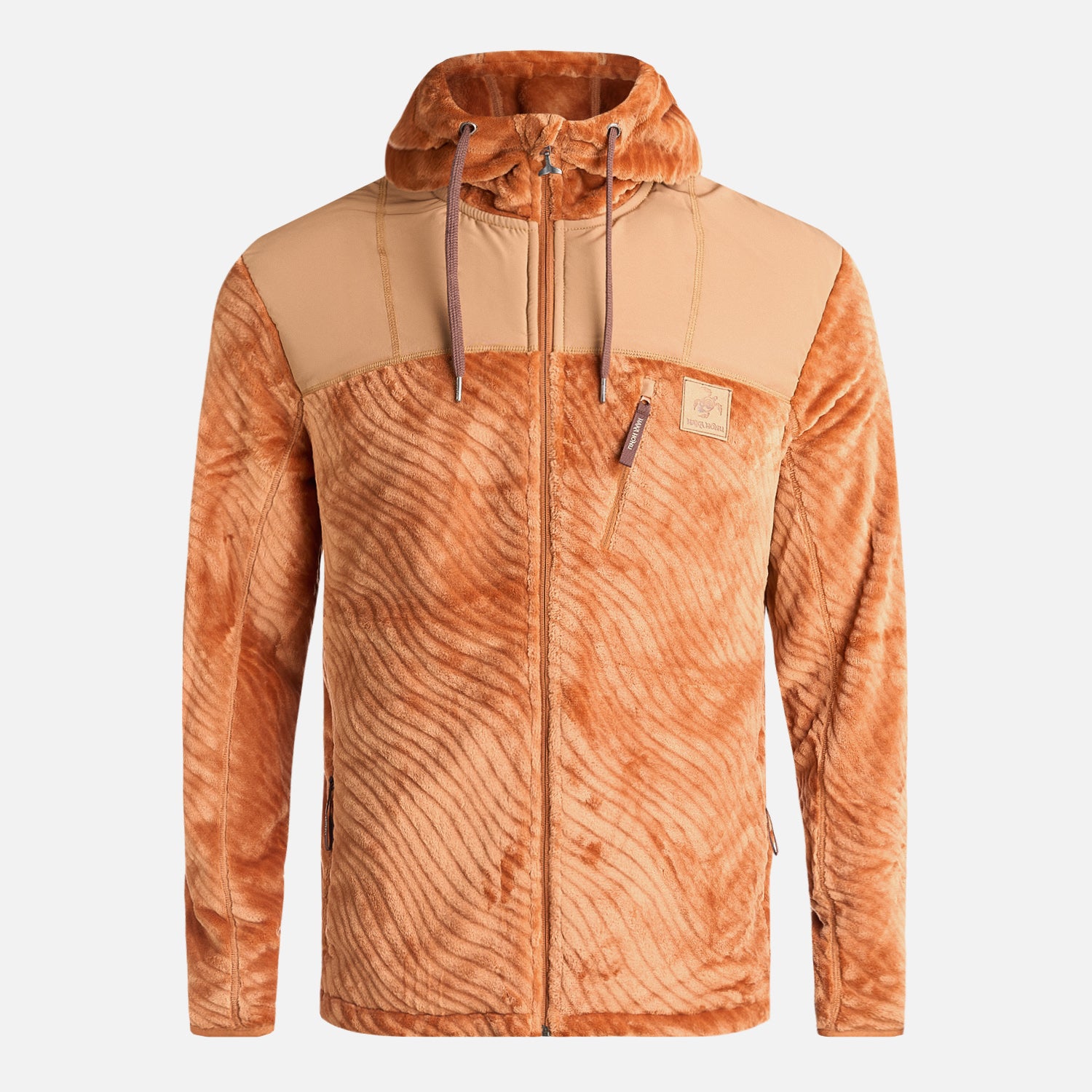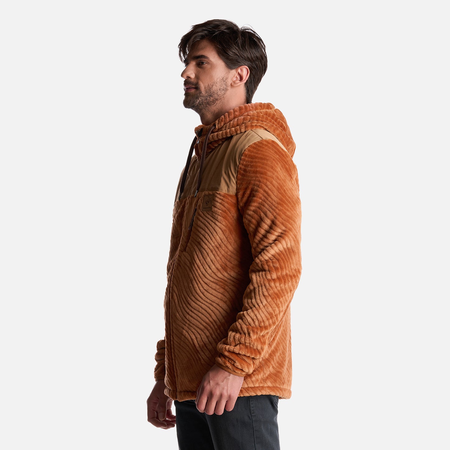 - Polerón de tela shaggy con embossed. - Tratamiento antipilling. - Producto Sustentable. - Cierre principal YKK. - Ajuste en puños con elástico. - Gráficas: Accesorios de cuero. - Bolsillo interior. - Bolsillos con cierre SBS. - Calce regular.