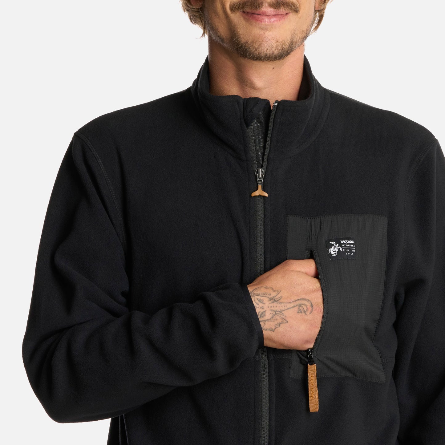 Midlayer liviano Cierre principal marca YKK y puller cola de ballena Bolsillo de pecho de parche taslan con cierre Bolsillos laterales con cierre Producto con colores colorblock Puños y basta con banda elástica para mejor calce