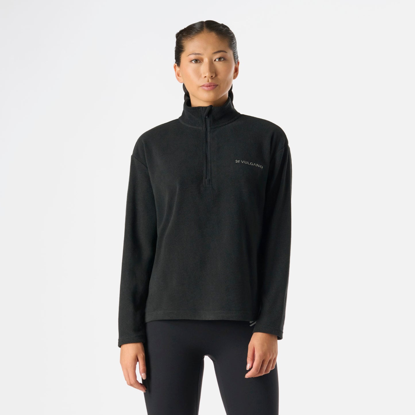 Polerón Mujer Cool Down 1/4 Zip Fleece Negro Vulcano