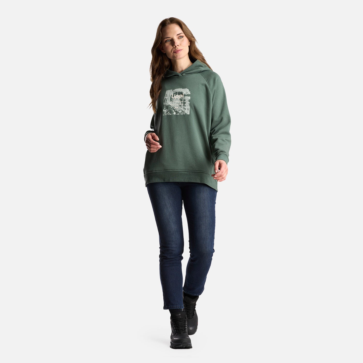 Poleron Mujer Insigne Hoody Sweatshirt Front Print Verde Musgo Lippi