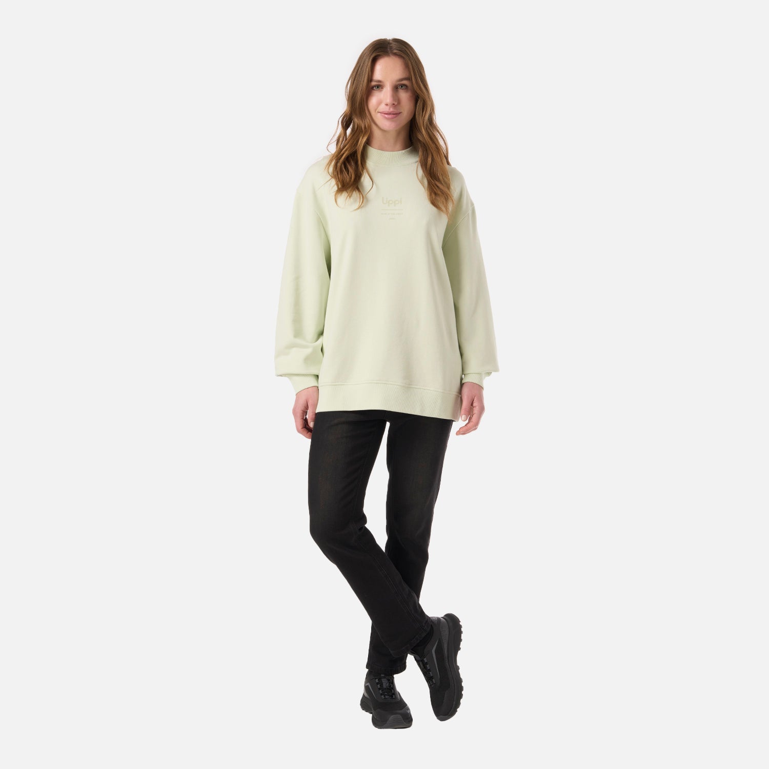 Polerón Mujer Ulmo Light Mid Point Crewneck Sweatshirt Gris Claro / Verde Agua Lippi