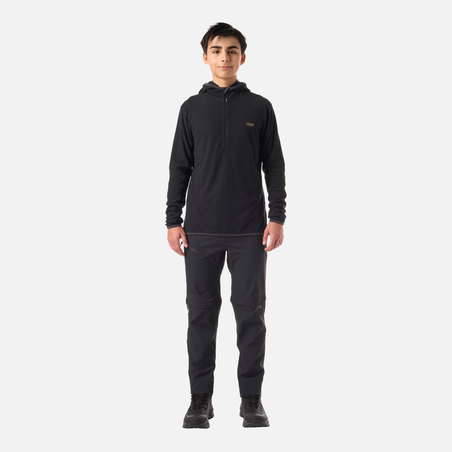 Pensado para entregar abrigo liviano y cómodo como segunda capa en días frescos. Este midlayer con gorro y textura jacquard combina un diseño distinto con calidez y ligereza, ideal para que los niños se muevan con libertad durante sus actividades al aire libre. Su tejido respira y ayuda a regular la temperatura, evitando el exceso de calor mientras mantiene el confort. Calidez funcional y protección extra para acompañar sus aventuras sin límites.