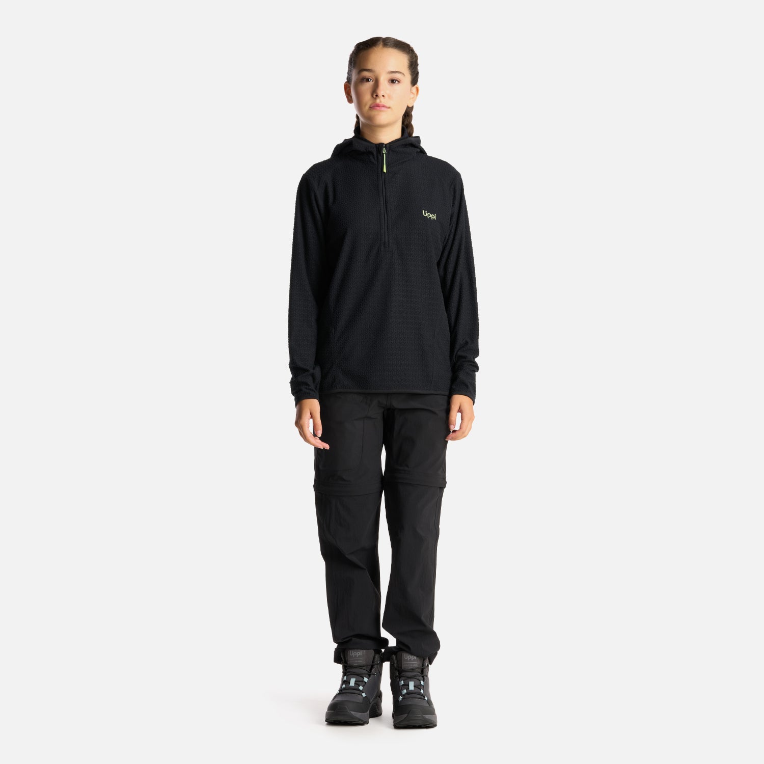Este midlayer presenta un diseño sencillo y ligero, ideal para usar como capa intermedia en diversas actividades. Cuenta con un cierre frontal de 1/4 que facilita su uso y un gorro que proporciona protección adicional contra el frío. Su calce regular asegura comodidad y libertad de movimiento, convirtiéndolo en una opción versátil para el día a día. Perfecto para combinaciones con otras prendas, este midlayer es ideal para actividades al aire libre o para un estilo casual en cualquier ocasión. Disfruta de la funcionalidad y el confort que ofrece esta prenda en tu guardarropa.