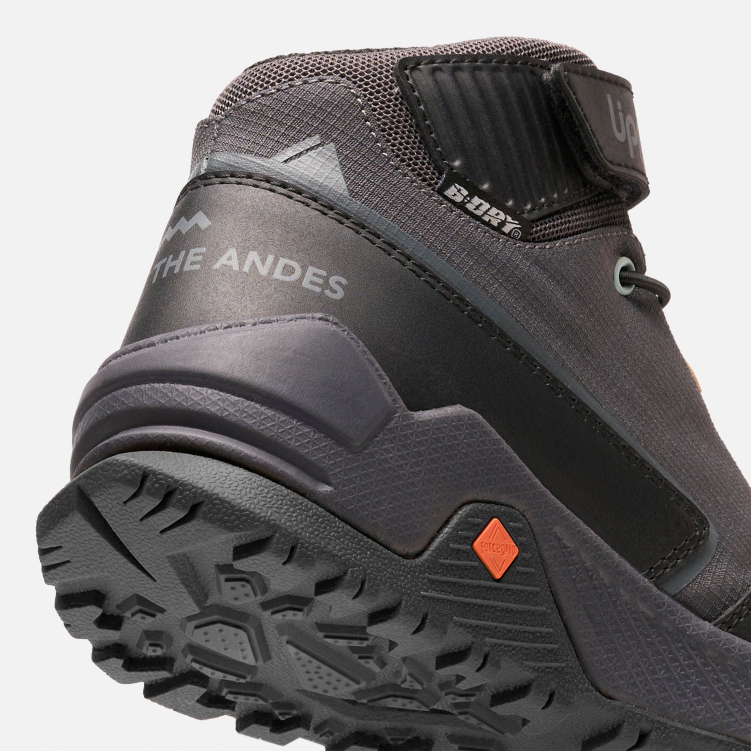 · Zapatilla hiking. · Capellada de poliéster y PU. · Cordones elasticados y velcro para facilitar su postura. · Forro membrana B·Dry impermeable y malla poliéster. · Suela Forcegrip de alto agarre. · Entresuela de EVA. · Plantilla Ortholite de espuma antibacterial