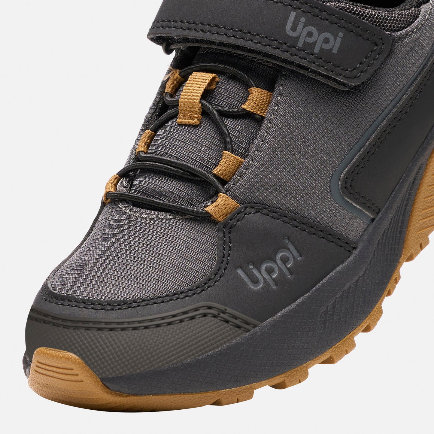 · Zapatilla hiking. · Capellada de poliéster y PU. · Cordones elasticados y velcro para facilitar su postura. · Forro malla poliéster. · Suela Forcegrip de alto agarre. · Entresuela de EVA. · Plantilla Ortholite de espuma antibacterial