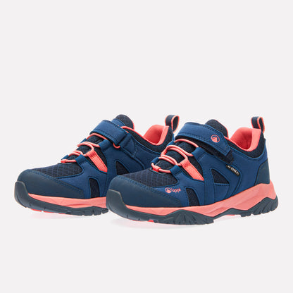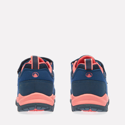 · Zapato hiking niño/a · Durable, impermeable y cómodo. · Caña baja. · Capellada de cuero Cow Suede hidrofugado y malla sintética resistente a la abrasión. · Refuerzos de goma en talón y puntera. · Forro membrana B-Dry impermeable. · Suela de goma de gran agarre. · Entresuela de EVA. · Plantilla Ortholite de espuma antibacterial. · Pasacordones de cinta y ganchos de ajuste rápido en la parte superior.