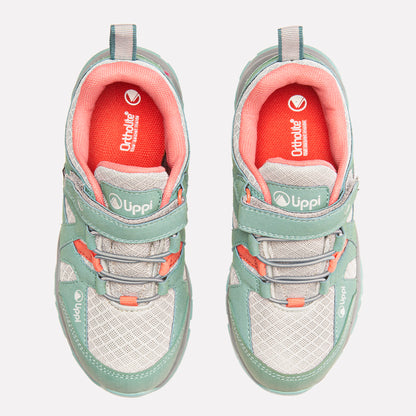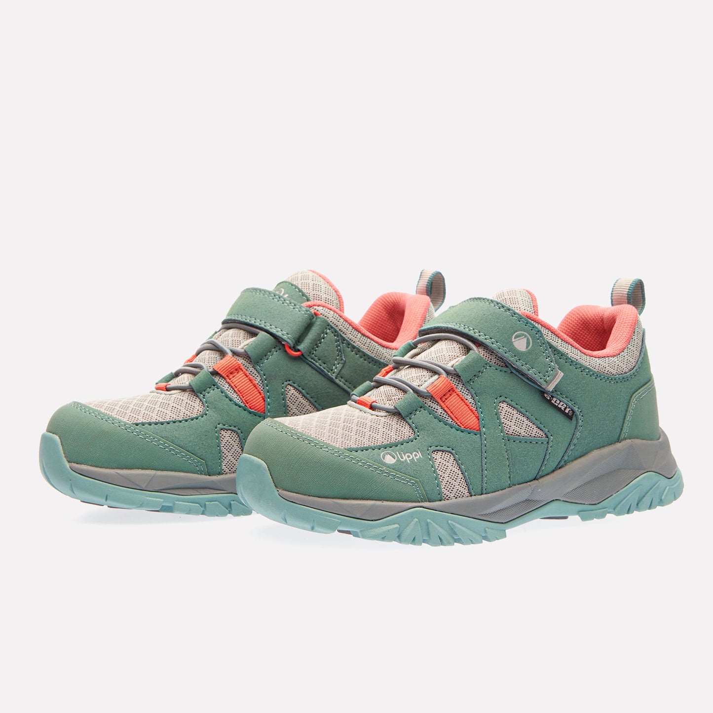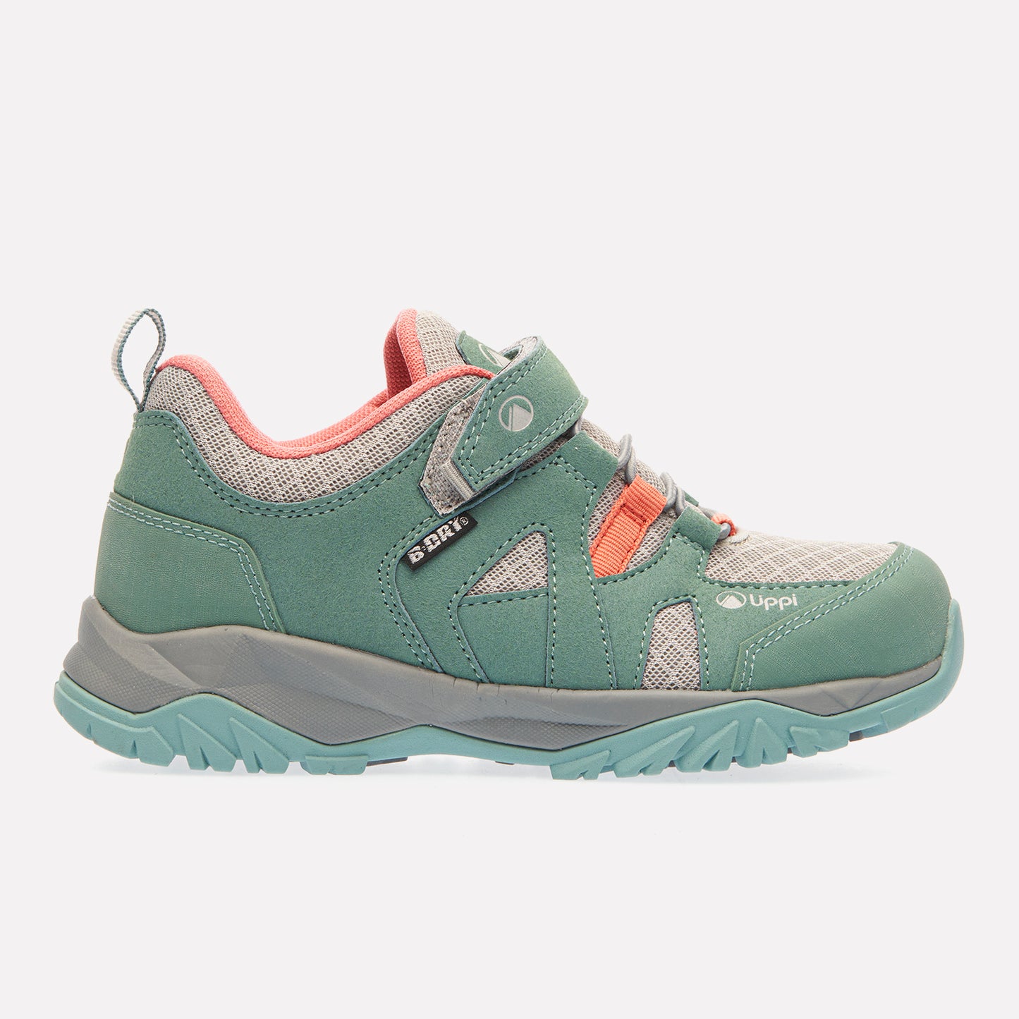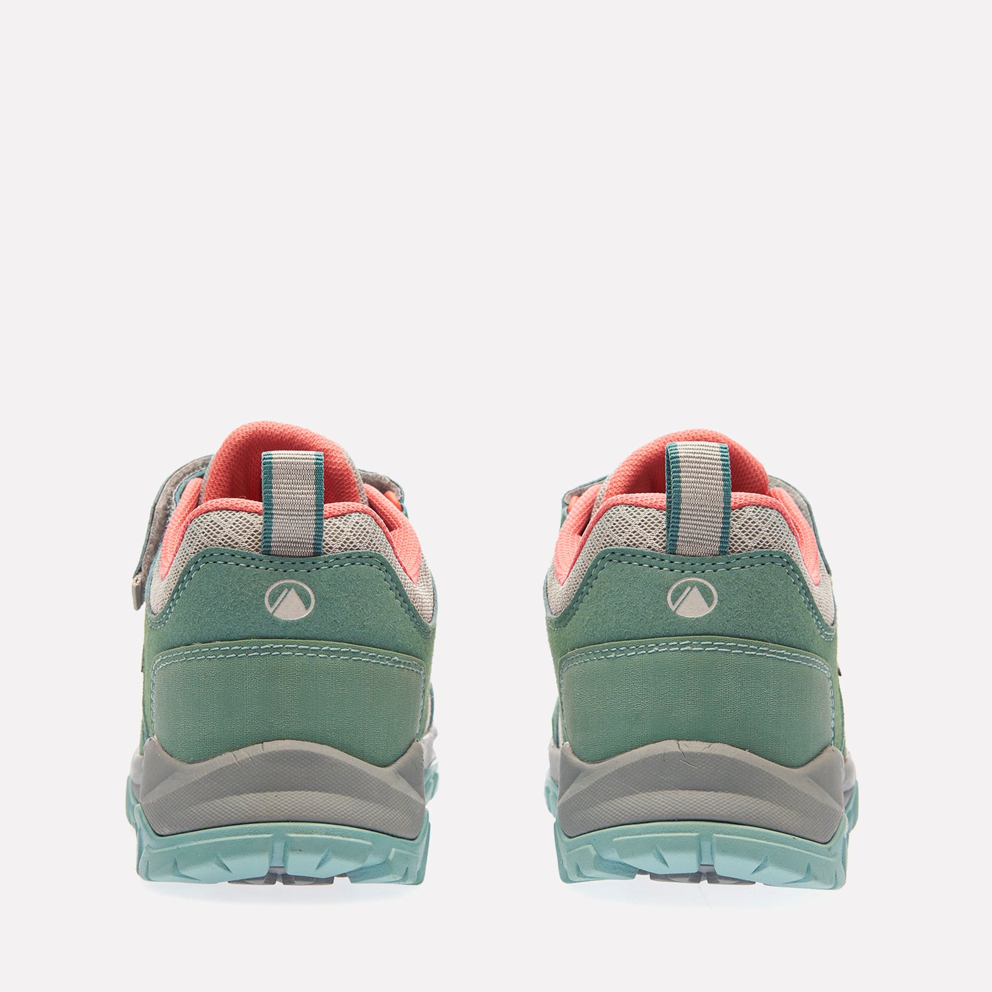 · Zapato hiking niño/a · Durable, impermeable y cómodo. · Caña baja. · Capellada de cuero Cow Suede hidrofugado y malla sintética resistente a la abrasión. · Refuerzos de goma en talón y puntera. · Forro membrana B-Dry impermeable. · Suela de goma de gran agarre. · Entresuela de EVA. · Plantilla Ortholite de espuma antibacterial. · Pasacordones de cinta y ganchos de ajuste rápido en la parte superior.